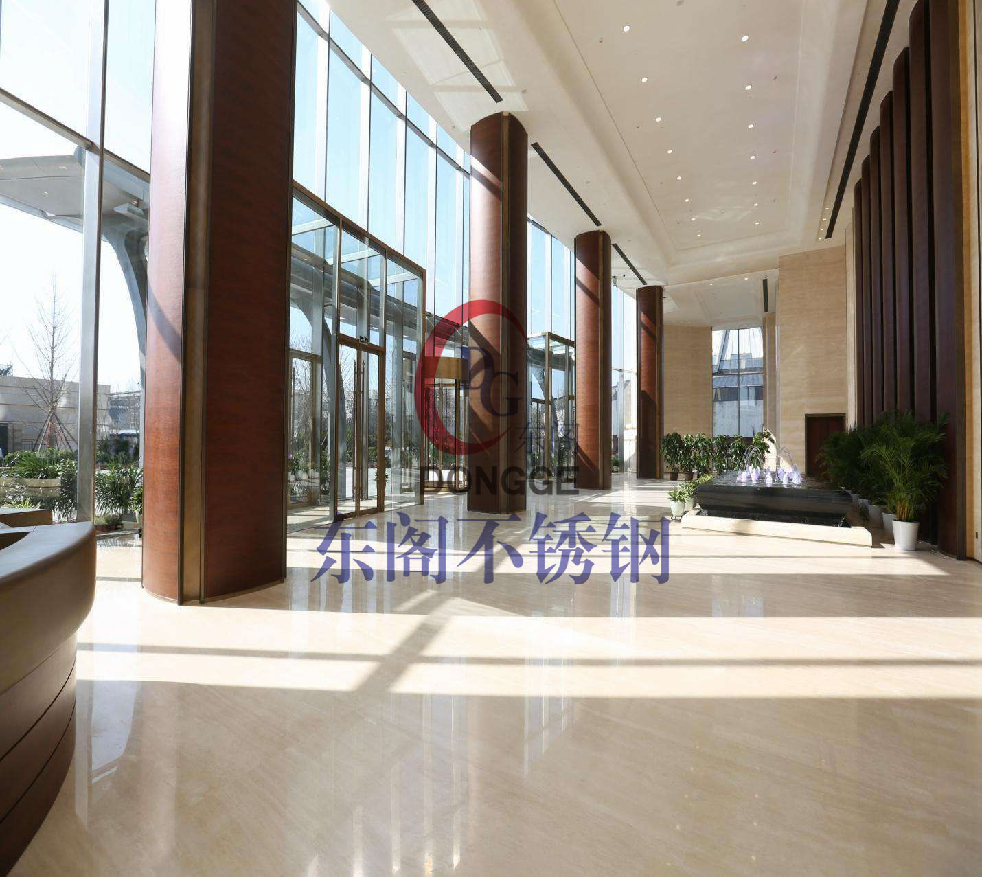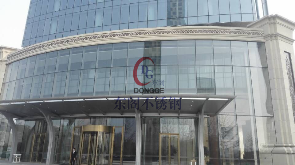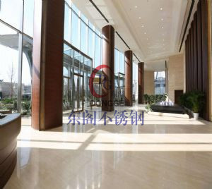 項目簡介:工程主樓大堂部位全部使用江蘇東閣自主生產的單根高度15.96米的超高不銹鋼承重立柱,立柱單重達2噸,單座四個立面使用75根,創造了國內單根不銹鋼立柱高度和單重的最高記錄。該立柱由厚度16mm的兩塊同高為15.96米的不銹鋼板中間加肋板組成,整體呈“H”型,外露面作拉絲抗指紋處理,表面無拼縫,渾然一體,整體感強,氣勢恢宏,令人贊嘆不已。這同時也體現了作為生產廠商的東閣公司的敢為人先的創新能力和不菲的生產實力。